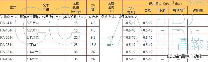 PA-14-N,PA-15-N,PA-20-N,PA-25-N,PA-35-N,PA-40-N,常閉電磁閥