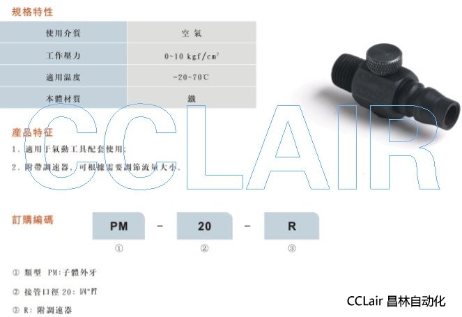 詳細信息 PM-20-R,快速接頭附調速器