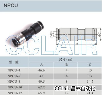 詳細信息 NPCU-4,NPCU-6,NPCU-8,NPCU-10,NPCU-12,接頭