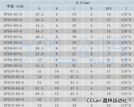 詳細信息 SPX4-01-G,SPX6-02-G,SPX8-01-G,SPX8-02-G,SPX10-01-G,SPX10-04-G,SPX12-02-G,接頭