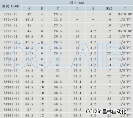 詳細信息 SPD4-M5,SPD4-01,SPD6-02,SPD8-01,SPD8-02,SPD10-01,SPD10-04,SPD12-02,接頭