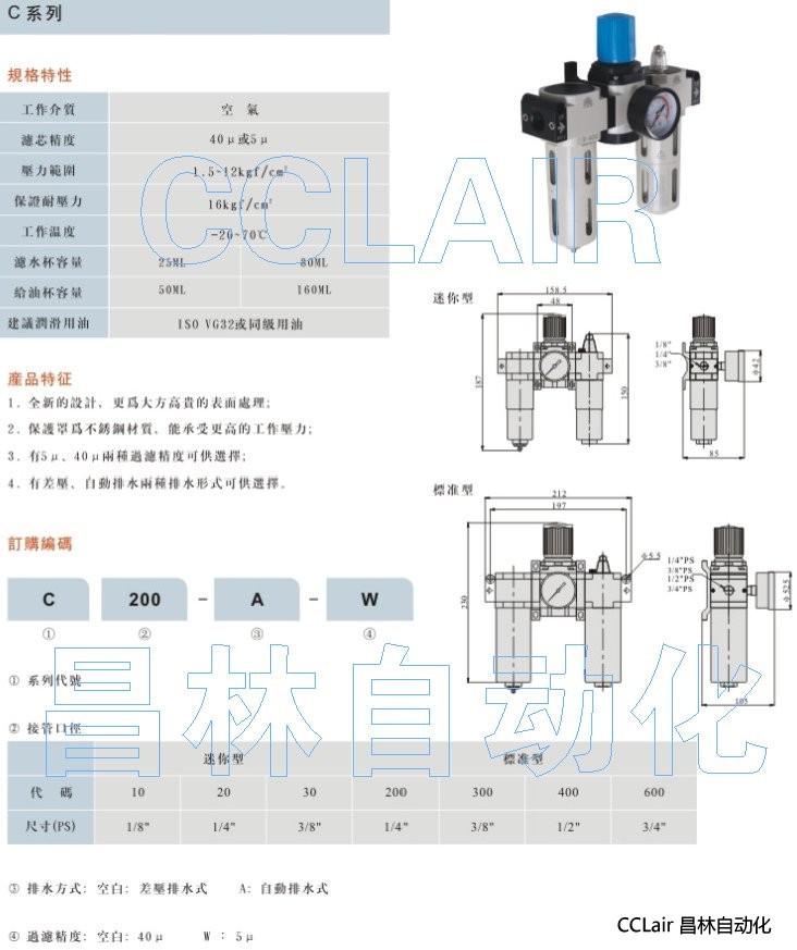 詳細信息 FC10-A-W,FC20-A-W,FC30-A-W,FC200-A-W,FC300-A-W,FC400-A-W,FC600-A-W,空氣調理組合