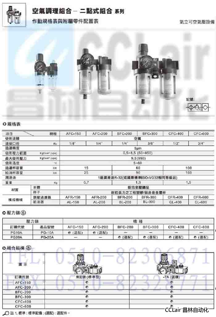 AFC-150,AFC-200,BFC-200,BFC-300,CFC-400,CFC-600,二點(diǎn)式組合
