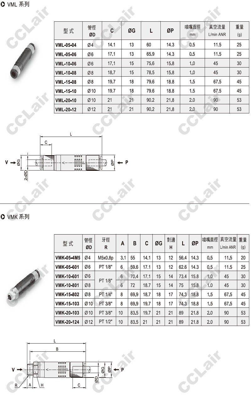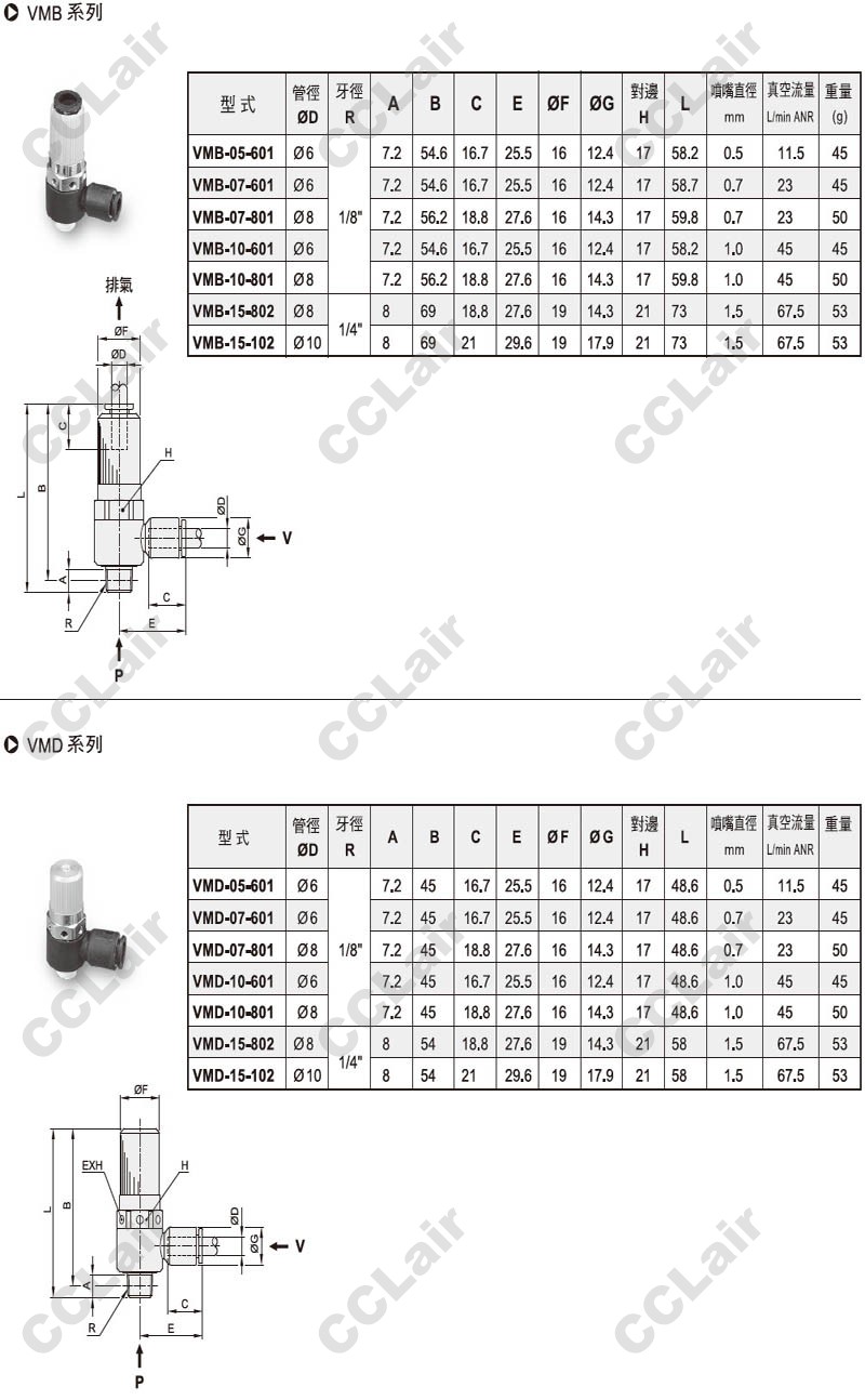 氣立可(chelic),VMB-05-601,,VMB-07-801,VMB-10,VMB-15,VMD-05-601,VMD-07,VMD-10,VMD-15