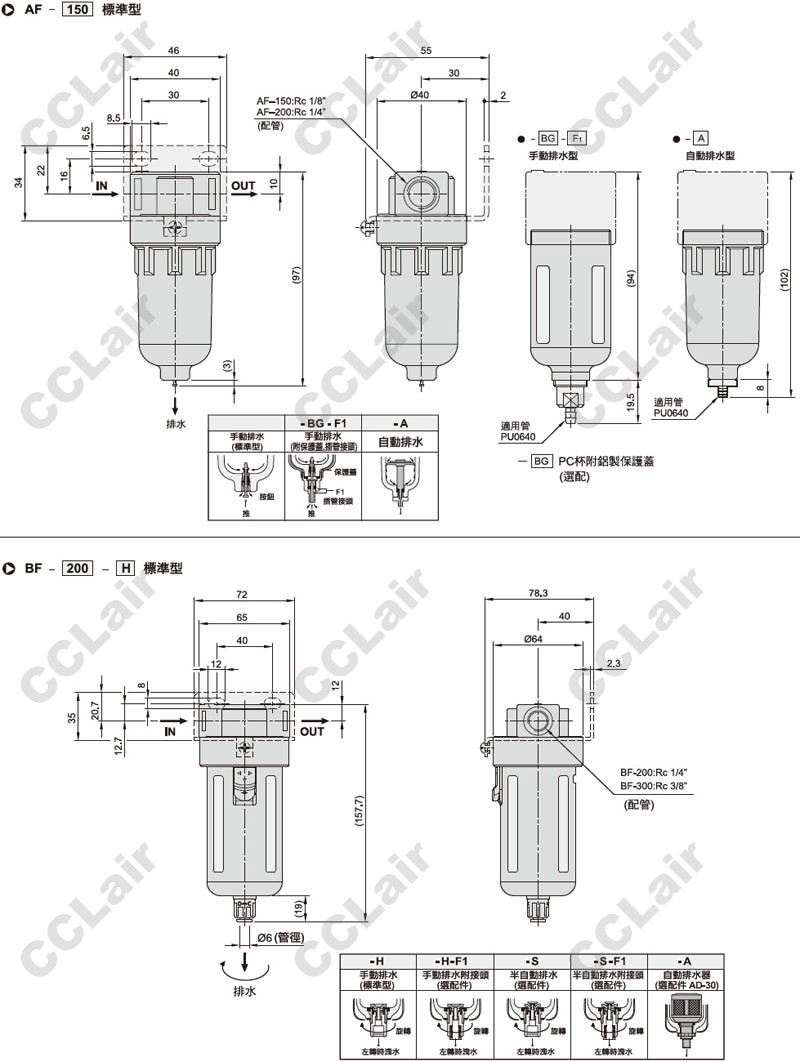 氣立可(chelic),AF-150,AF-200,BF-200,BF-300,CF-400,CF-600,AF-150-G-BG-A-F1-PG10A,空氣過(guò)濾器