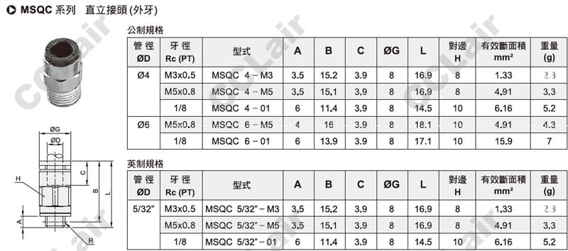 氣立可(chelic),MSQC4-M3,MSQC4-M5,MSQC4-01,MSQC6-M5,MSQC6-01,MSQC5/32-M3,MSQC5/32-M5,MSQC5/32-01,直立接頭