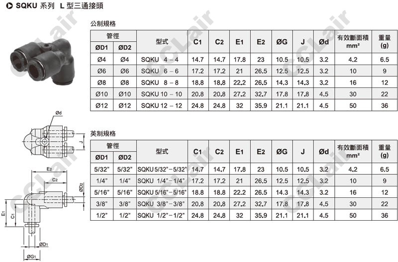 ![]() SQKU5/16-5/16,SQKU3/8-3/8,SQKU1/2-1/2,SQKU5/32-5/32,SQKU1/4-1/4,SQKU10-10,SQKU12-12,SQKU6-6,SQKU8-8,L型三通接頭