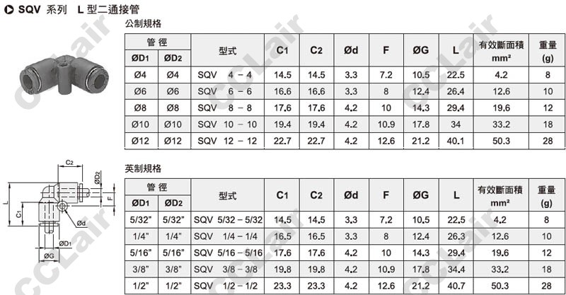 氣立可(chelic),SQV4-4,SQV6-6,SQV8-8,SQV10,SQV12,SQV5/32,SQV1/4,SQV5/16,SQV3/8,SQV1/2