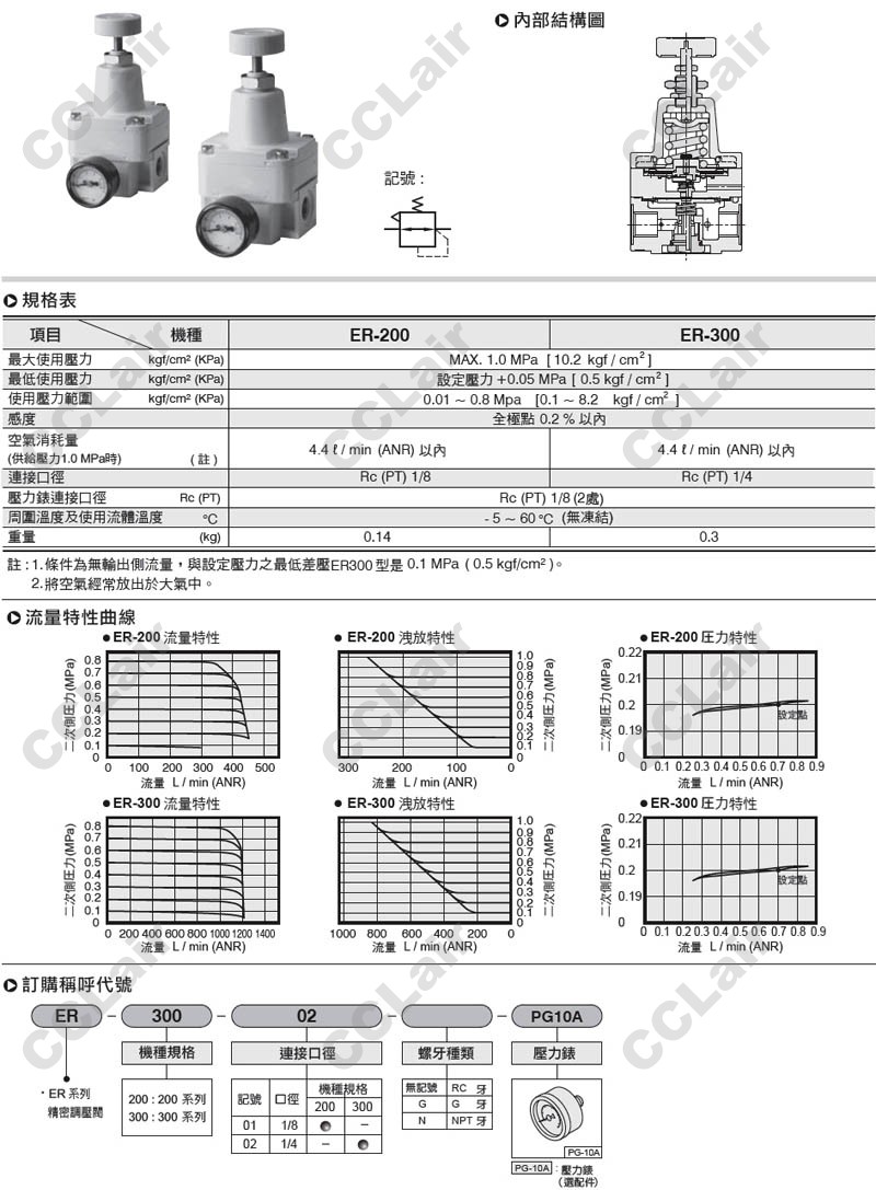 氣立可(chelic),ER-200-01-G-PG10A,ER-200-01-PG10A,ER-300-02-G-PG10A,ER-300-02-N-PG10A,精密調壓閥