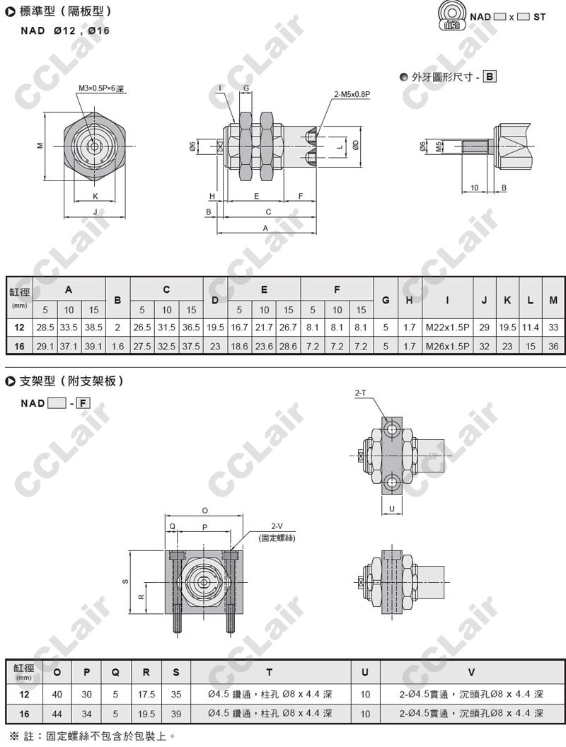 氣立可(chelic),NA12*5,NA12X10,NA16X5,NA16*15,NAD12X5,NAD12*15,NAD16*5,螺牙氣缸
