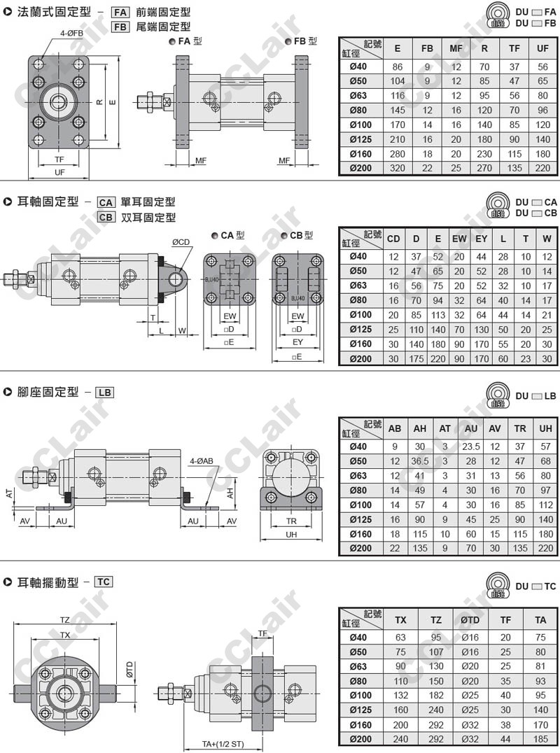 DU40*50-TC-Y,DU40*75-TC-Y,DU40*100-TC-Y,DU40*125-TC-Y,DU40*150-TC-Y,DU40*200-TC-Y,DU40*250-TC-Y,DU40*300-TC-Y,