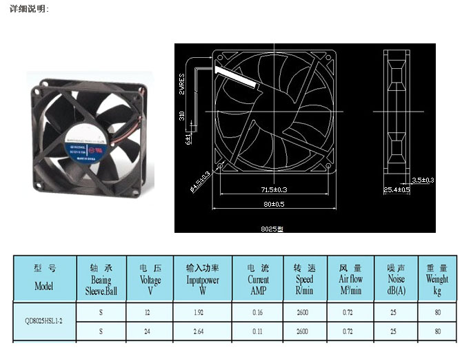 詳細信息 QD8025HSL1-2,直流風(fēng)機