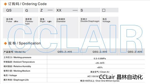 詳細信息 QSG-Z-40S,QSG-Z-50S,QSG-Z-62S,脈沖閥脈沖閥