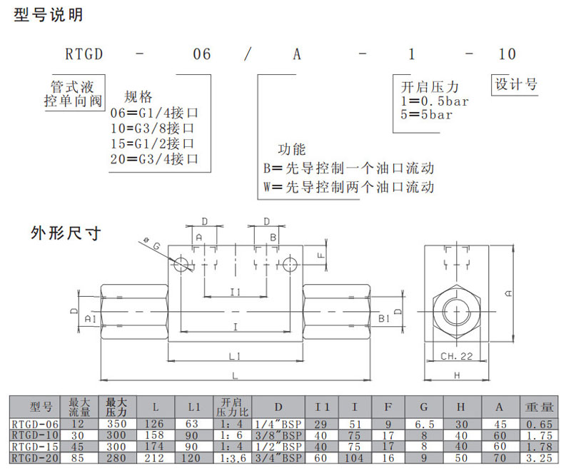 RTGD-06/A-1-10,RTGD-10/A-1-10,RTGD-15/A-1-10,RTGD-20/A-1-10,管式液控單向閥
