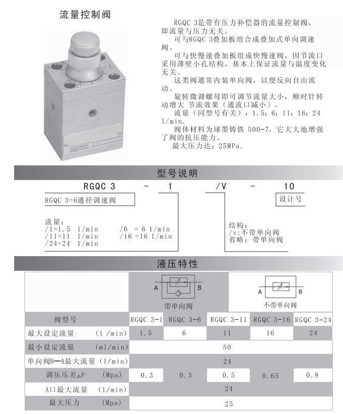 詳細信息 RGQC3-1-10,RGQC3-6-10,RGQC3-11-10,RGQC3-16-10,RGQC3-24-10,流量控制閥