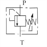 當在P口的壓力超過(guò)調壓彈簧設定的壓力時(shí),錐閥 芯打開(kāi),P到T通,防止系統過(guò)壓。