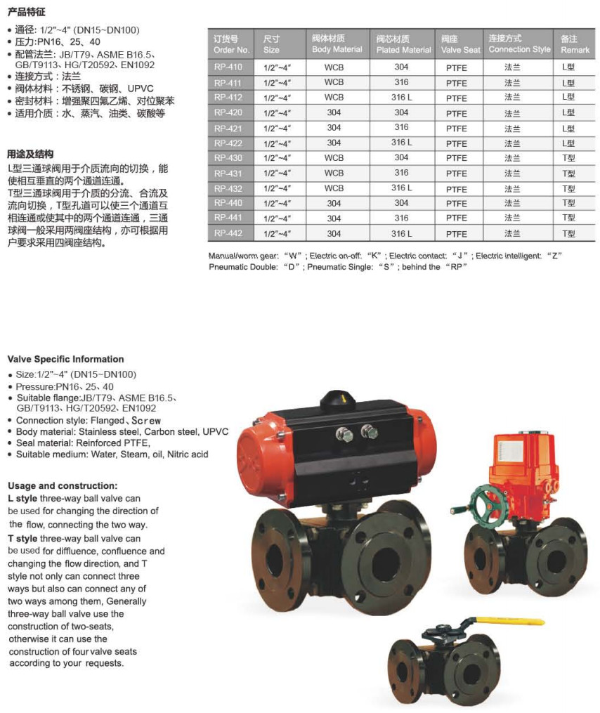 RP-410,RP-411,RP-420,RP-422,RP-430,RP-431,RP-440,RP-441,三通球閥