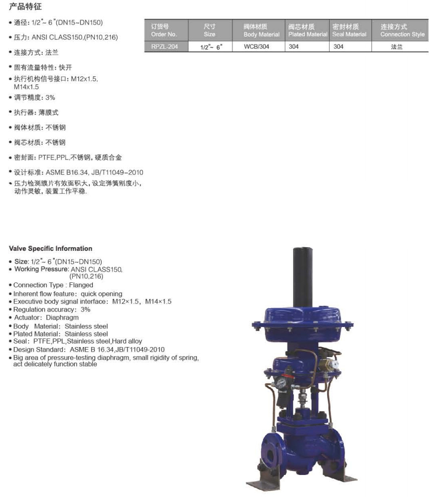 詳細信息 RPZL-204-DN20,RPZL-204-DN25,RPZL-204-DN32,RPZL-204-DN40,RPZL-204-DN50,RPZL-204-DN65,RPZL-204-DN80,帶指揮器自力式壓力調節閥