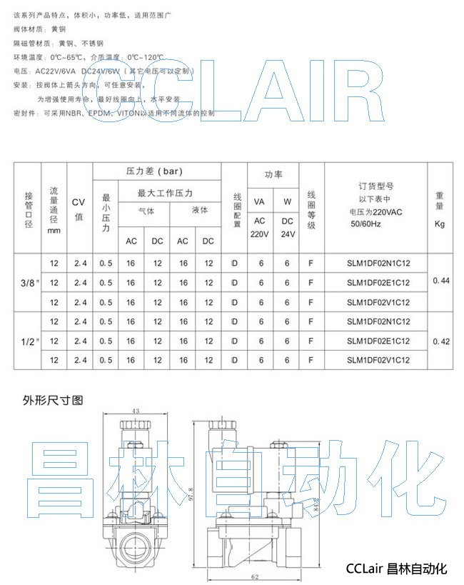 詳細信息 SLM1DF02N1C12,SLM1DF02E1C12,二位二通先導式電磁閥