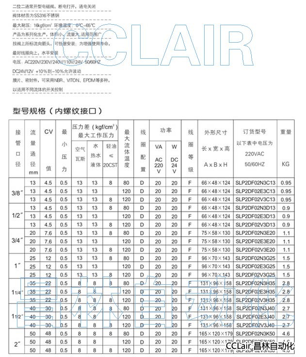 SLP2DF02N3H35,SLP2DF02E3H35,不銹鋼二位二通電磁閥(常開(kāi)型)