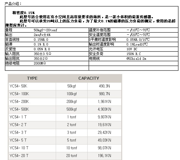 詳細信息 YC54-50K,YC54-100K,YC54-20K,YC54-1T,YC54-2T,YC54-3T,setech稱(chēng)重傳感器