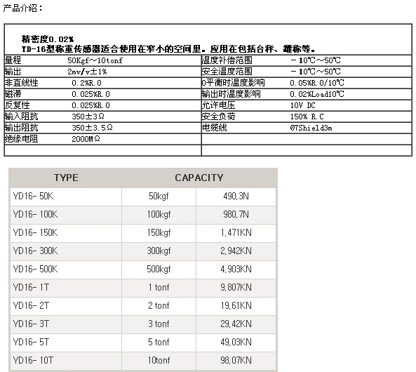 詳細信息 YD16-50K,YD16-100K,YD16-150K,YD16-3T,YD16-5T,YD16-10T,setech稱(chēng)重傳感器