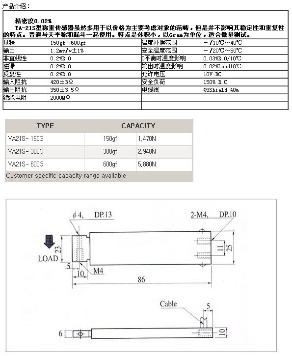 詳細信息 YA21S-150G,YA21S-300G,YA21S-600G,setech稱(chēng)重傳感器