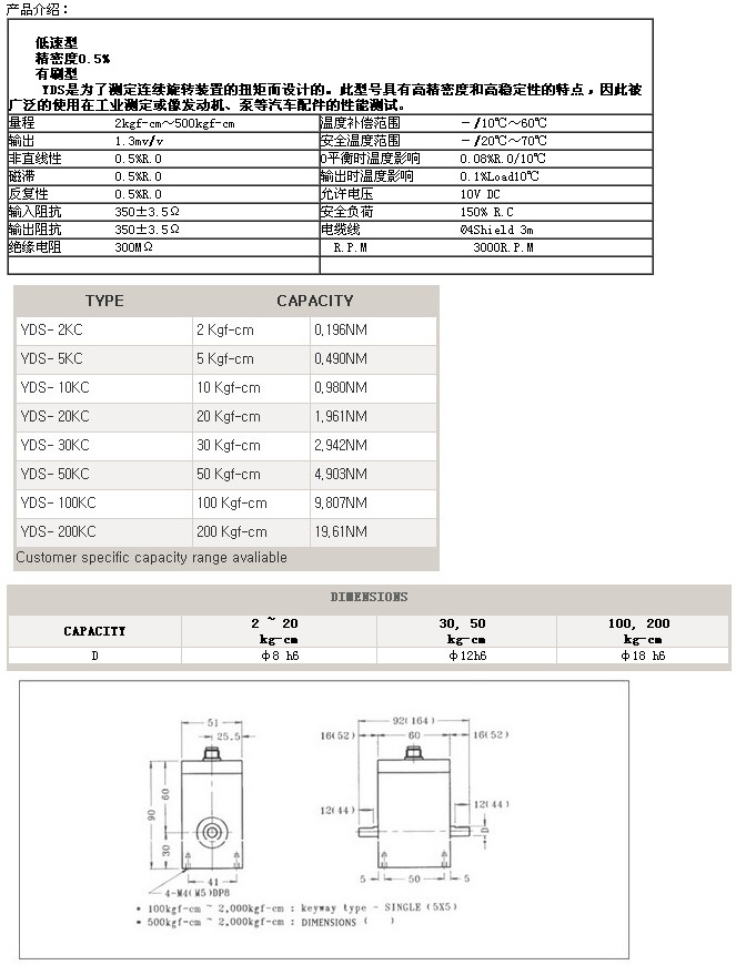 YDS-2KC,YDS-5KC,YDS-10KC,YDS-20KC,YDS-30KC,YDS-50KC,setech扭矩傳感器