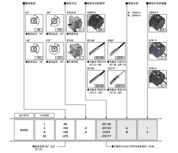 RANS1-90,RANS1-100,RANS1-180,RANS1-270,RANS3-90,RANS3-100,帶旋轉式執行元件磁性開(kāi)關(guān)