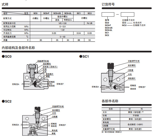 SC0,SC0-F,SC0-US,SC0-UL,SC1,SC2,節流閥SC系列