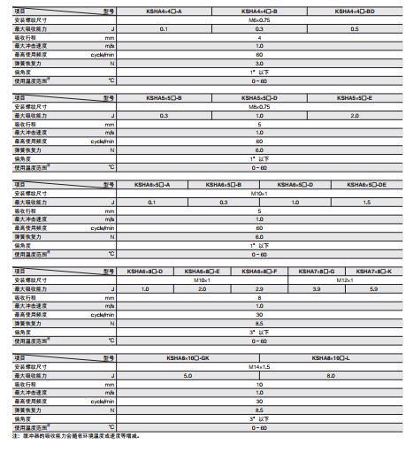 KSHA4*4-A,KSHA4*4C-A,KSHA4*4-B,KSHA4*4C-B,KSHA4*4-BD,KSHA4*4C-BD,緩沖器