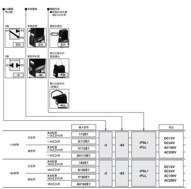 182E1,182E1-PLL,182E1-PSL,182E1-2,182E1-2-PLL,182E1-2-PSL,真空電磁閥V182系列