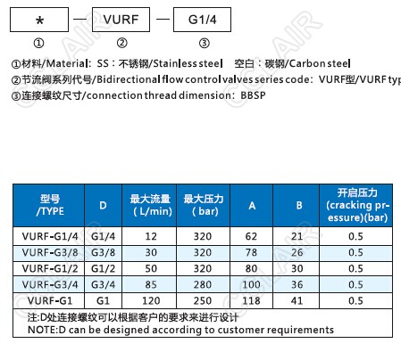 VURF-G1/4,VURF-G3/8,VURF-G1/2,VURF-G3/4,VURF-G1,VURF,單向節流閥