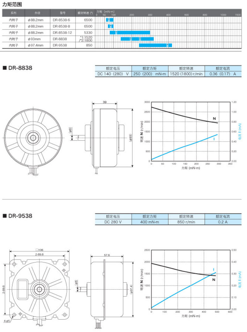 DR-8538-6,DR-8538-8,DR-8538-12,DR-8838,DR-9538,內轉子直流無(wú)刷馬達