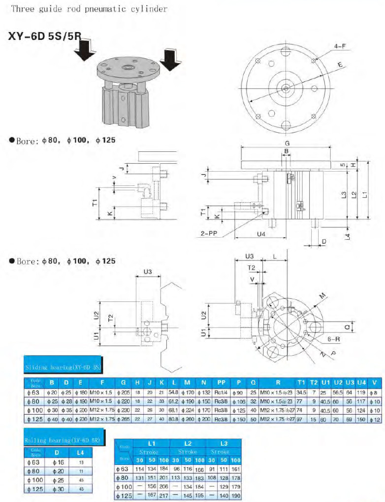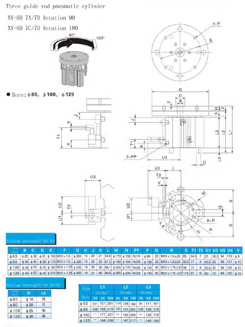 XY-6D5S-63,XY-6D5R-80,XY-6D7A-100,XY-6D7B-125,XY-6D7C-63,XY-6D7D-80,Shinya三導桿氣缸