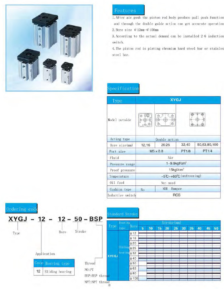 XYGJ-12-12,XYGJ-12-25,XYGJ-12-32,XYGJ-12-40,XYGJ-12-50,XYGJ-12-63,XYGJ-12-80,Shinya薄雙導桿缸