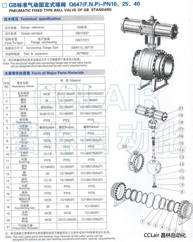 Q647F-16,Q647F-25,Q647F-40,標準氣動(dòng)固定式球閥