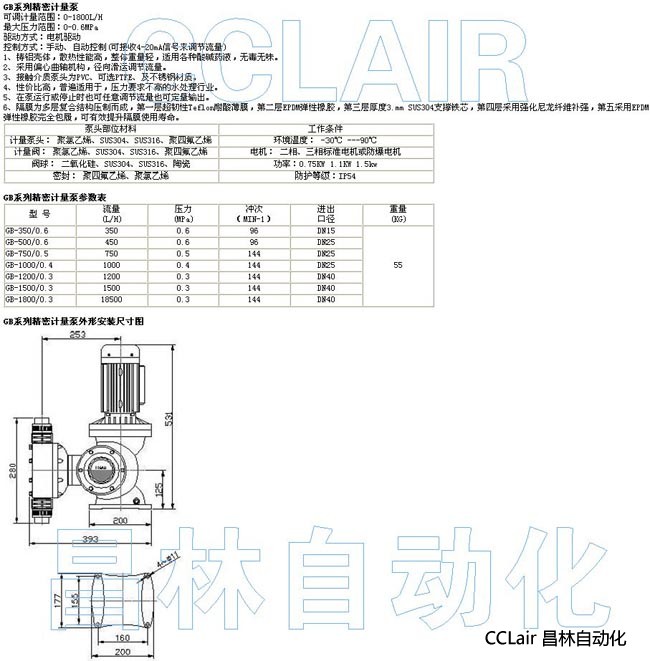 GB-350/0.6,GB-500/0.6,GB-750/0.5,GB-1000/0.4,精密計量泵
