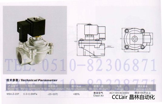 詳細信息 MSA-Z-20P,直角式脈沖閥