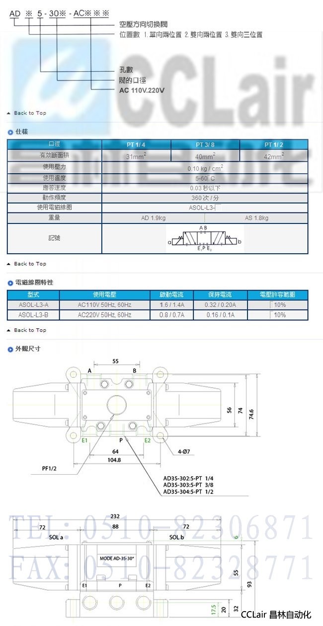 AD35-302, AS35-302,AD35-303, AS35-303,空壓用直動(dòng)式電磁閥