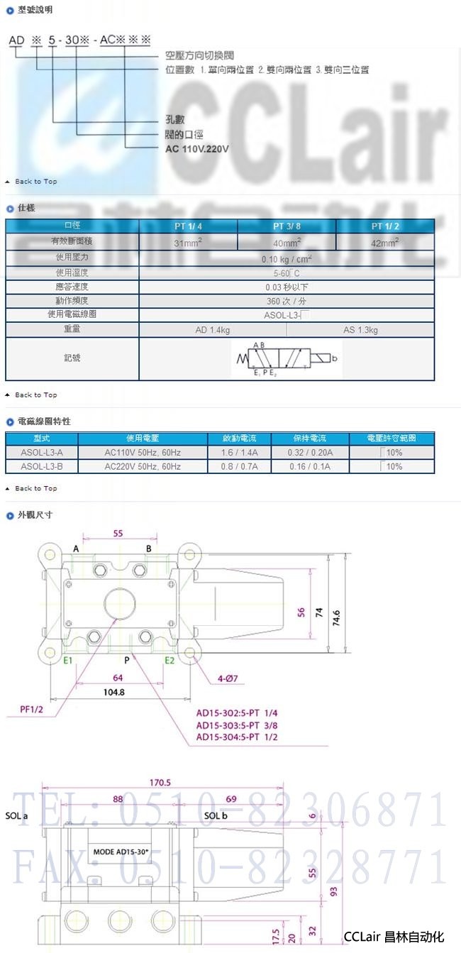 AD15-302, AS15-302,AD15-303, AS15-303,空壓用直動(dòng)式電磁閥