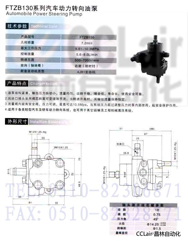 詳細信息 FTZB130,汽車(chē)動(dòng)力轉向油泵
