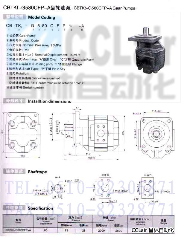 詳細信息 CBTKt-G580CFP-A,齒輪油泵
