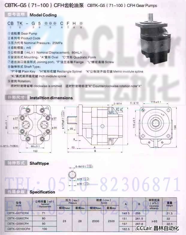 詳細信息 CBTK-G571CFH,CBTK-G580CFH,CBTK-G590CFH,CBTK-G5100CFH,齒輪油泵