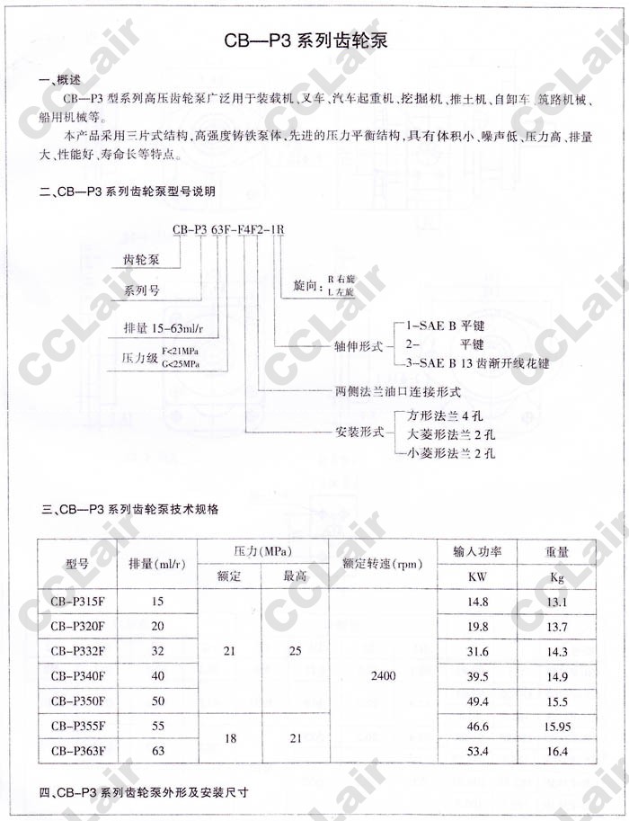 詳細信息 CB-P315F,CB-P320F,CB-P332F,CB-P340F,CB-P350F,CB-P355F,CB-P363F,齒輪泵,YUCIYUKEN
