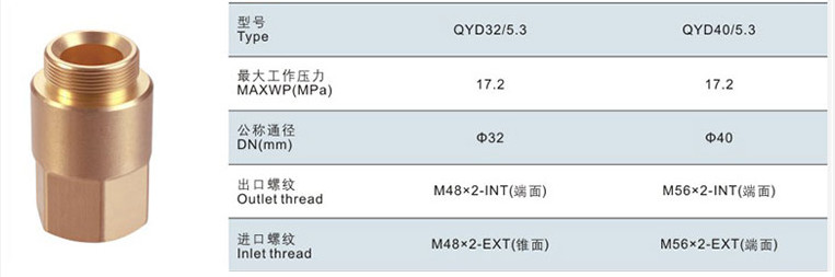 詳細信息 QYD32/5.3,QYD40/5.3,單向閥