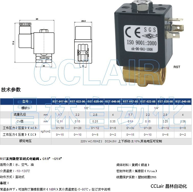 詳細信息 RST-017-06,RST-022-06,RST-028-06,微型常閉式電磁閥,G1/8〞~G1/4〞