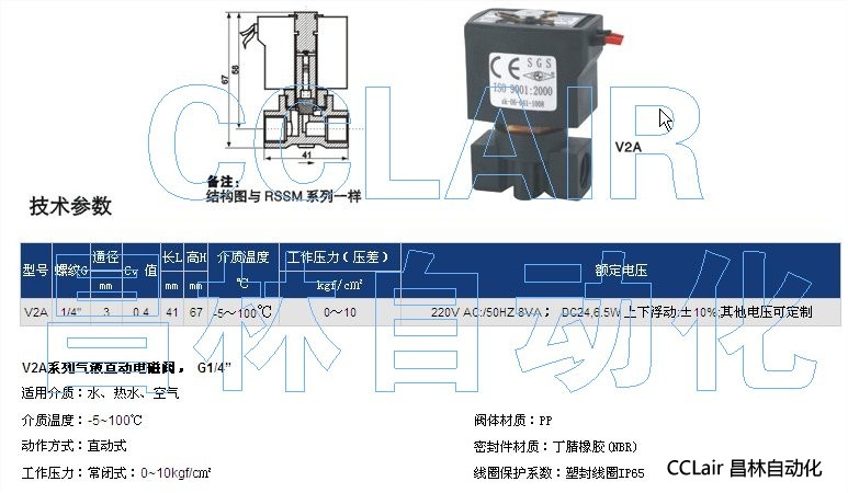 V2A,氣液直動(dòng)電磁閥, G1/4”