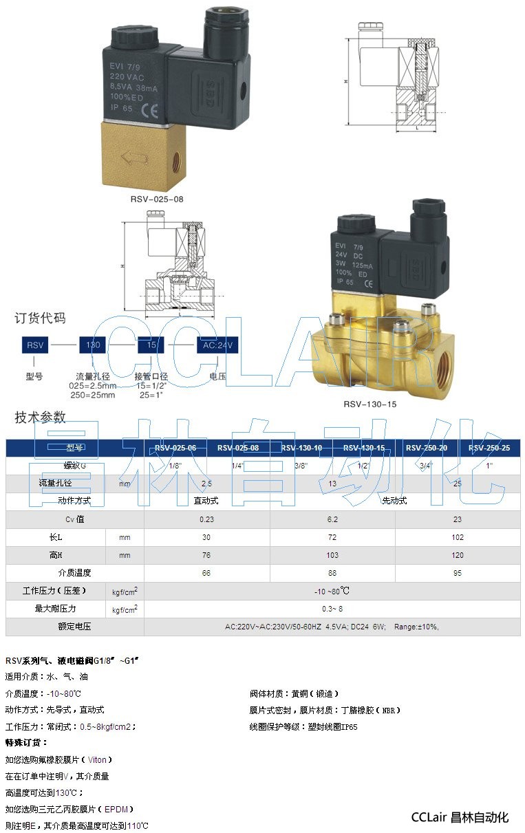 RSV-025-06,RSV-025-08,RSV-130-10,氣、液電磁閥 G1/8〞~G1〞