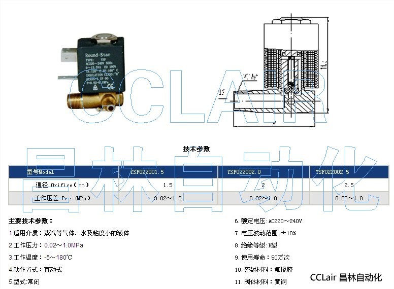 YSF022001.5,YSF022002.0,YSF022002.5,電熨斗專(zhuān)用電磁閥